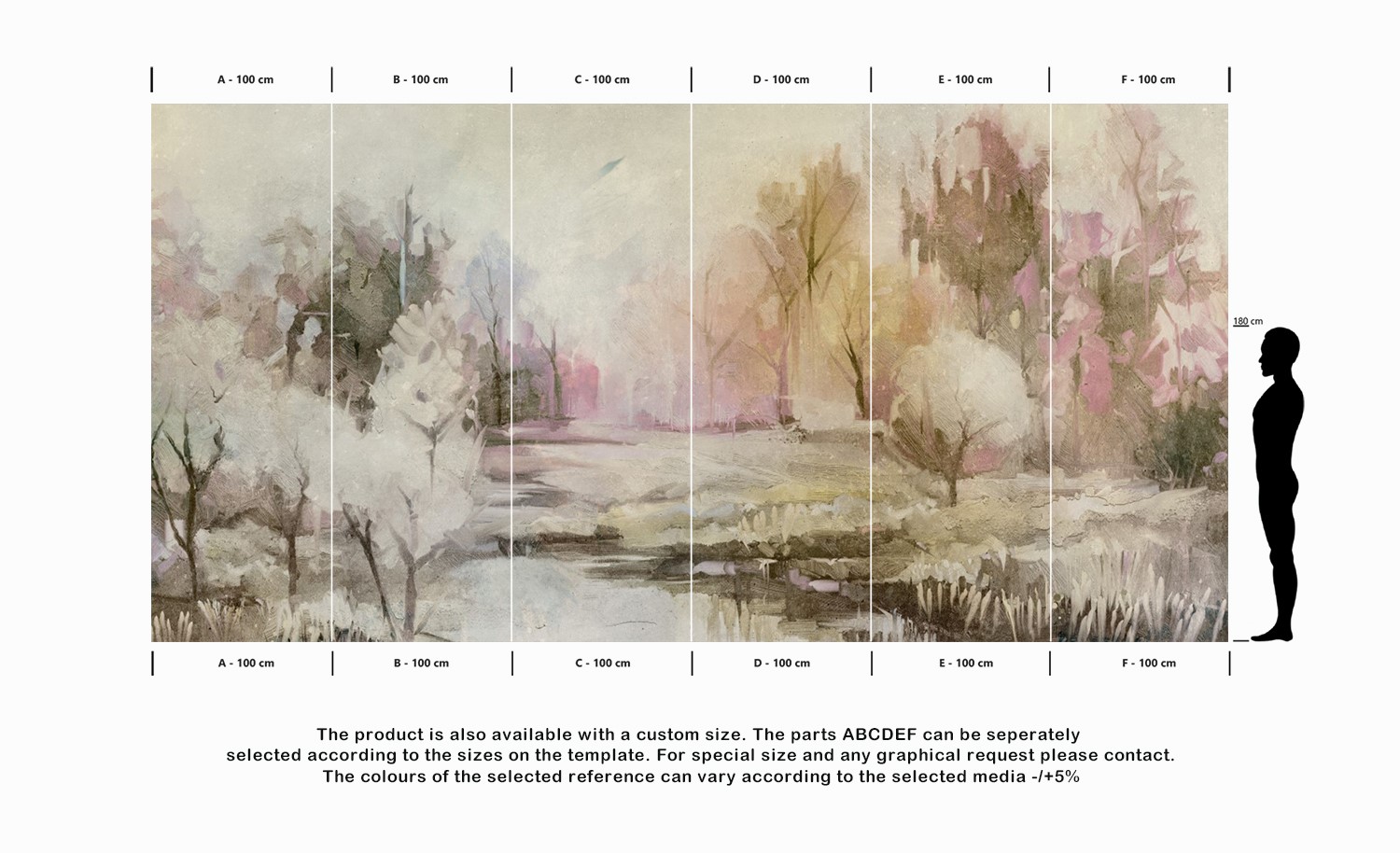 The product is also available with a custom size. The parts ABCDEF can be seperately