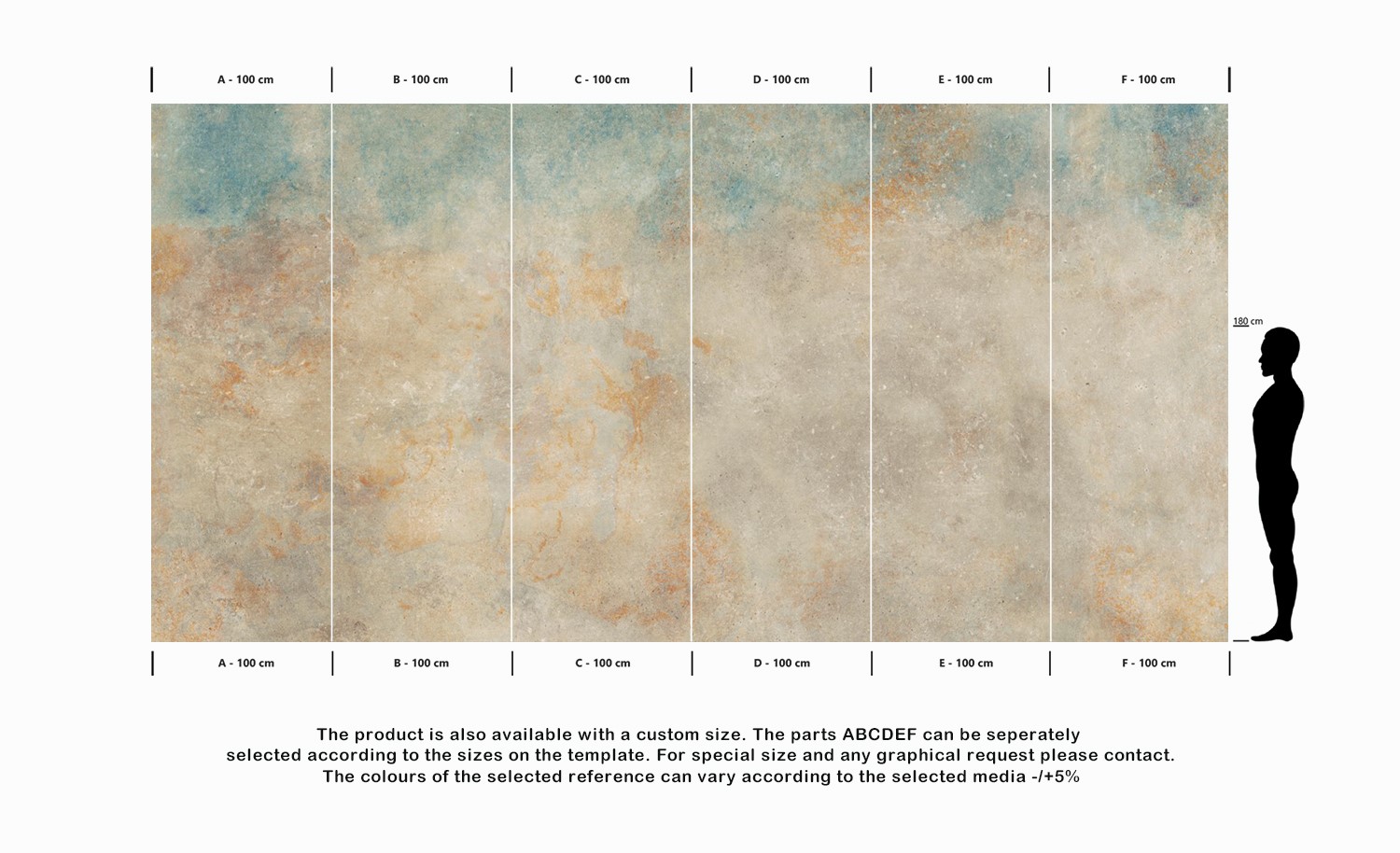 The product is also available with a custom size. The parts ABCDEF can be seperately