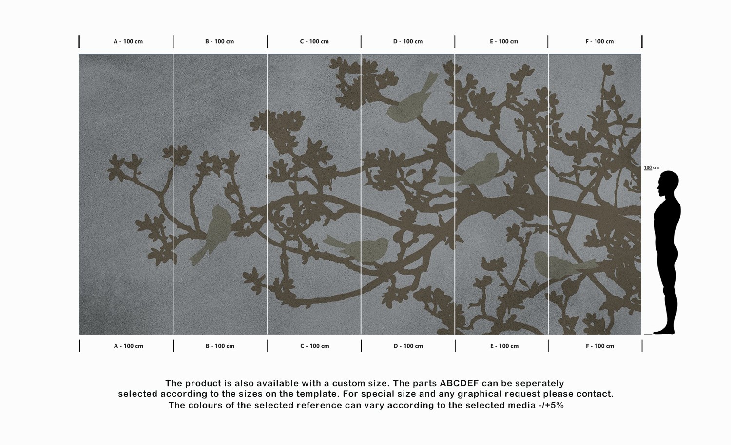 The product is also available with a custom size. The parts ABCDEF can be seperately