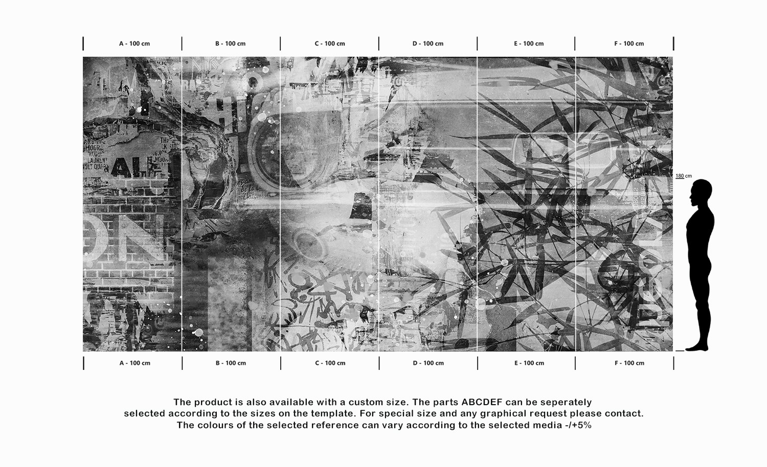 The product is also available with a custom size. The parts ABCDEF can be seperately
