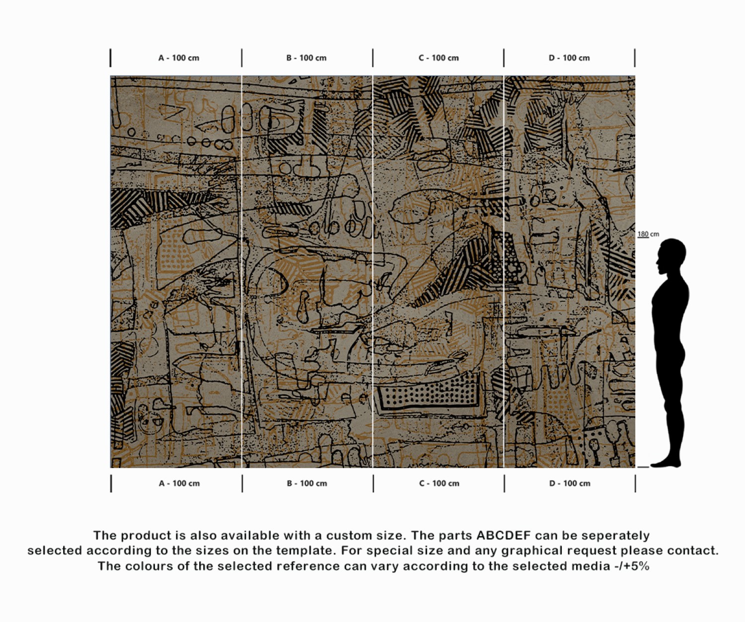 The product is also available with a custom size. The parts ABCDEF can be seperately