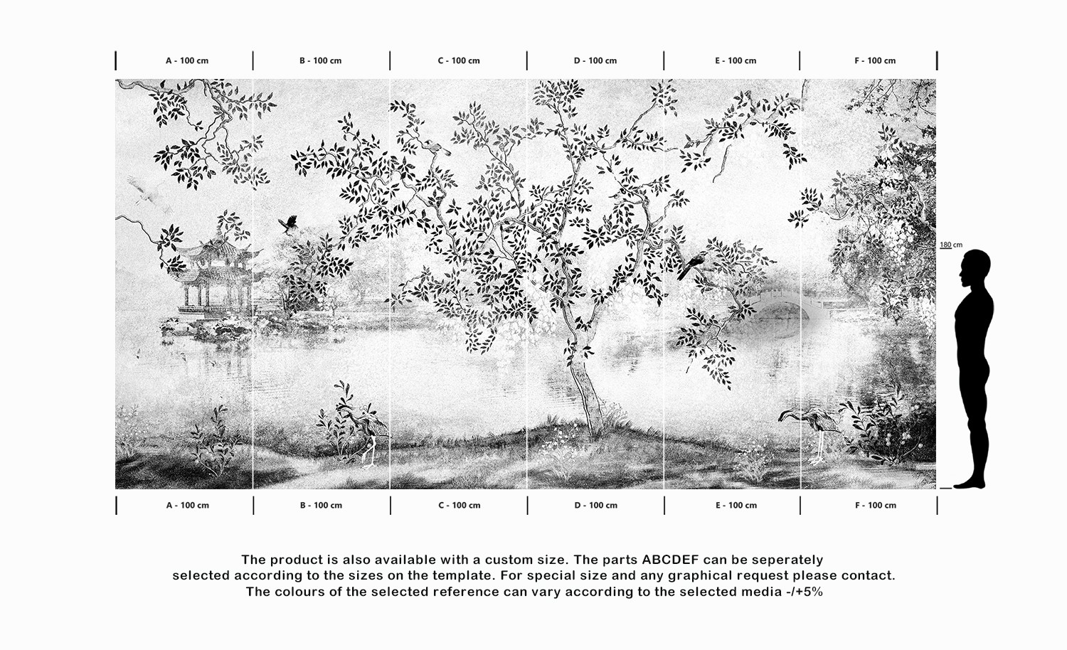 The product is also available with a custom size. The parts ABCDEF can be seperately