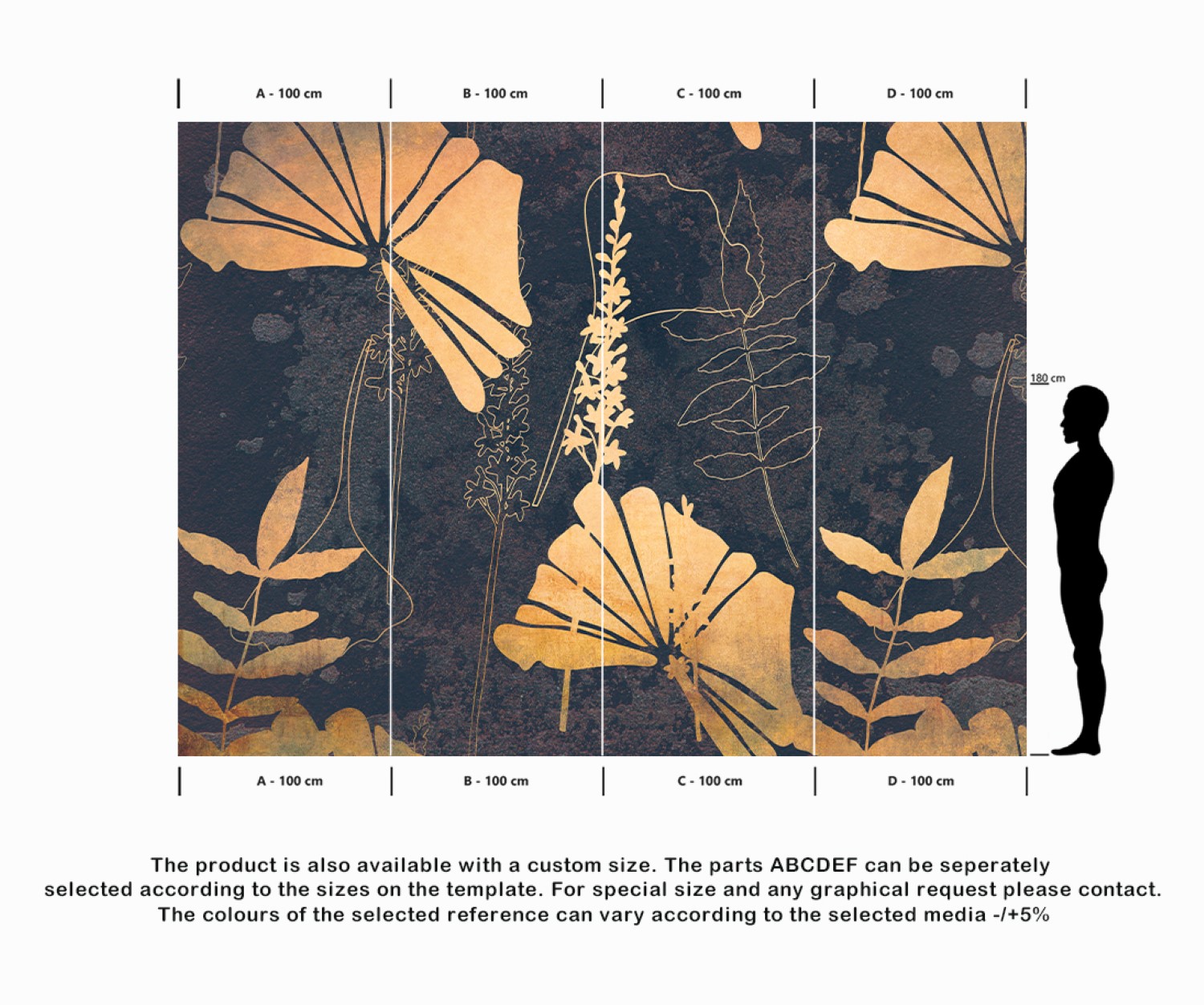 The product is also available with a custom size. The parts ABCDEF can be seperately
