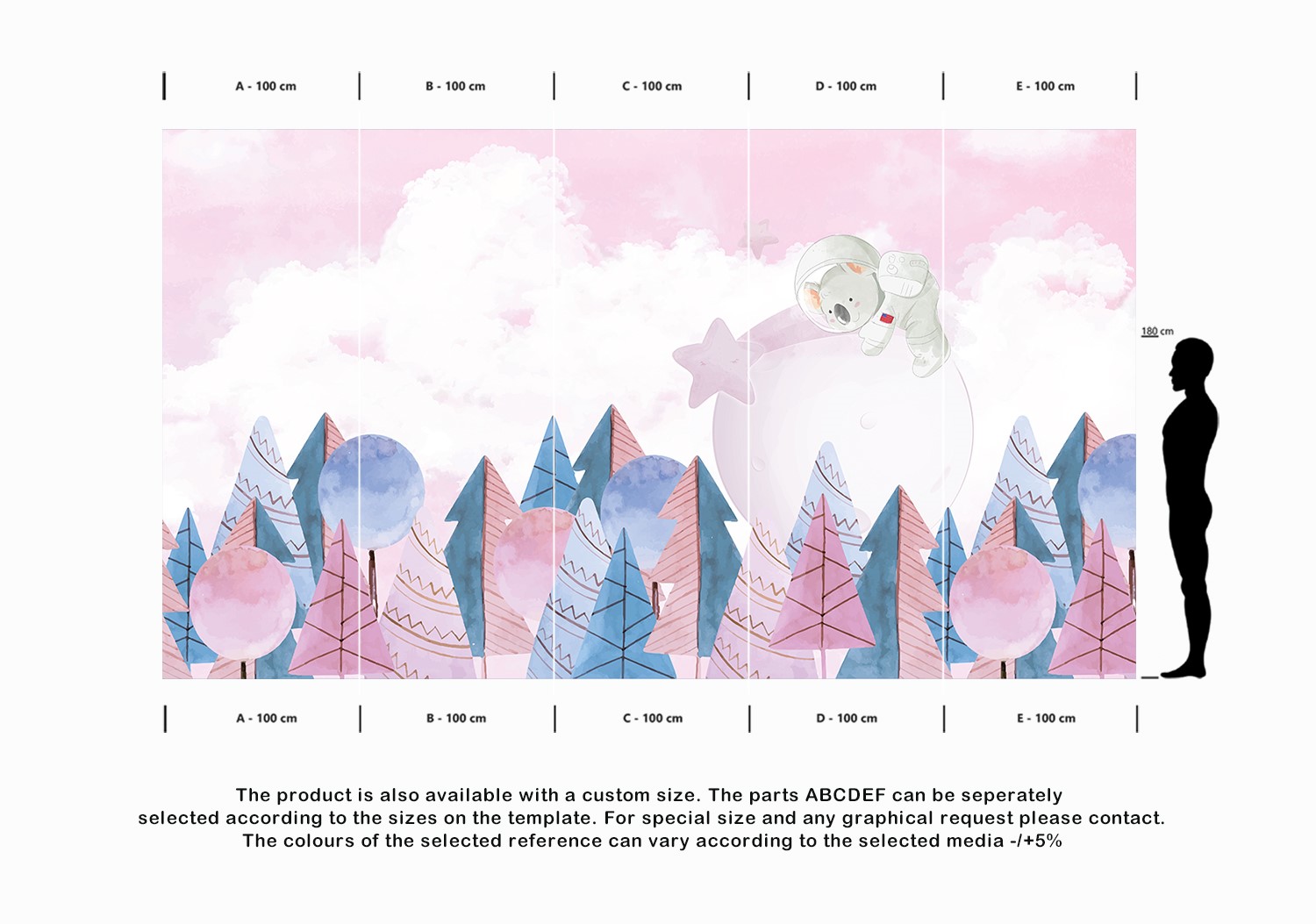 The product is also available with a custom size. The parts ABCDEF can be seperately