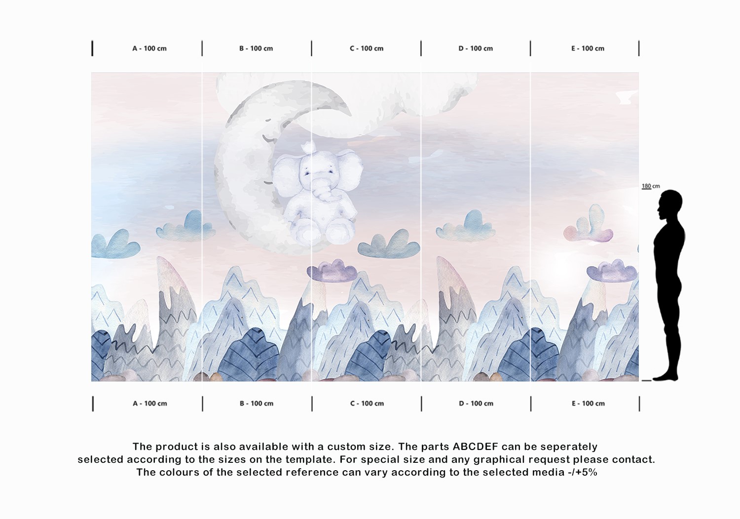 The product is also available with a custom size. The parts ABCDEF can be seperately