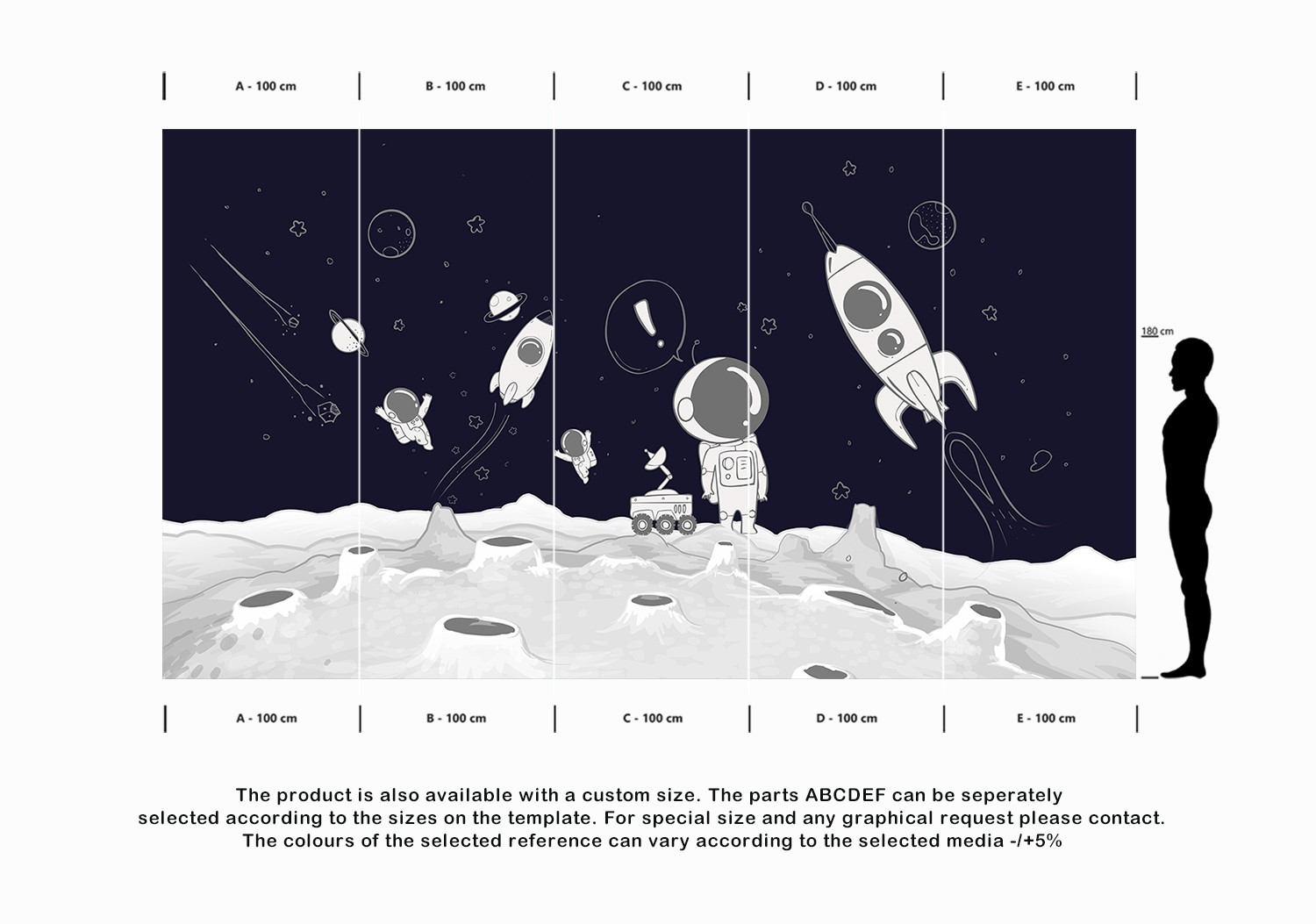 The product is also available with a custom size. The parts ABCDEF can be seperately