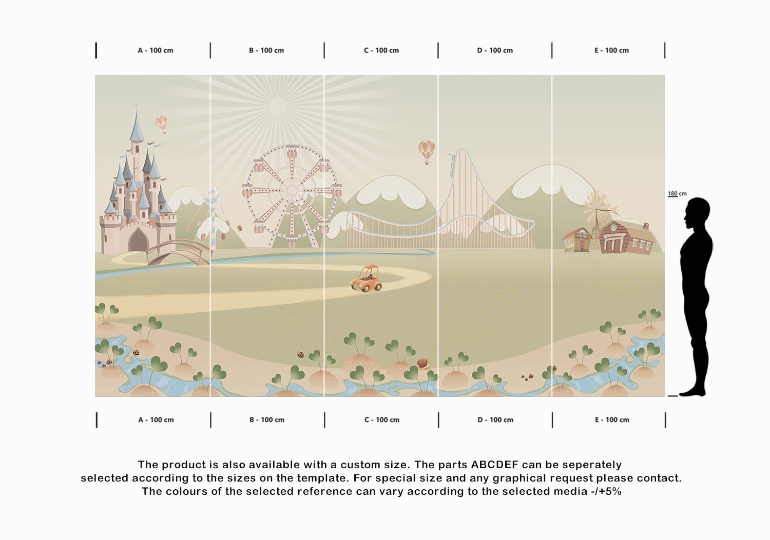 The product is also available with a custom size. The parts ABCDEF can be seperately