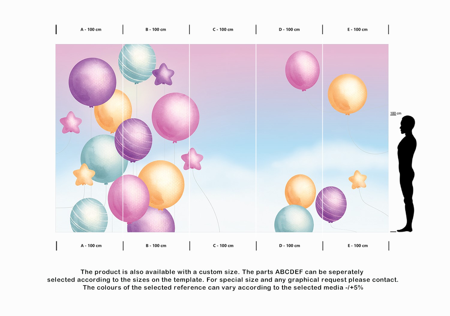 The product is also available with a custom size. The parts ABCDEF can be seperately