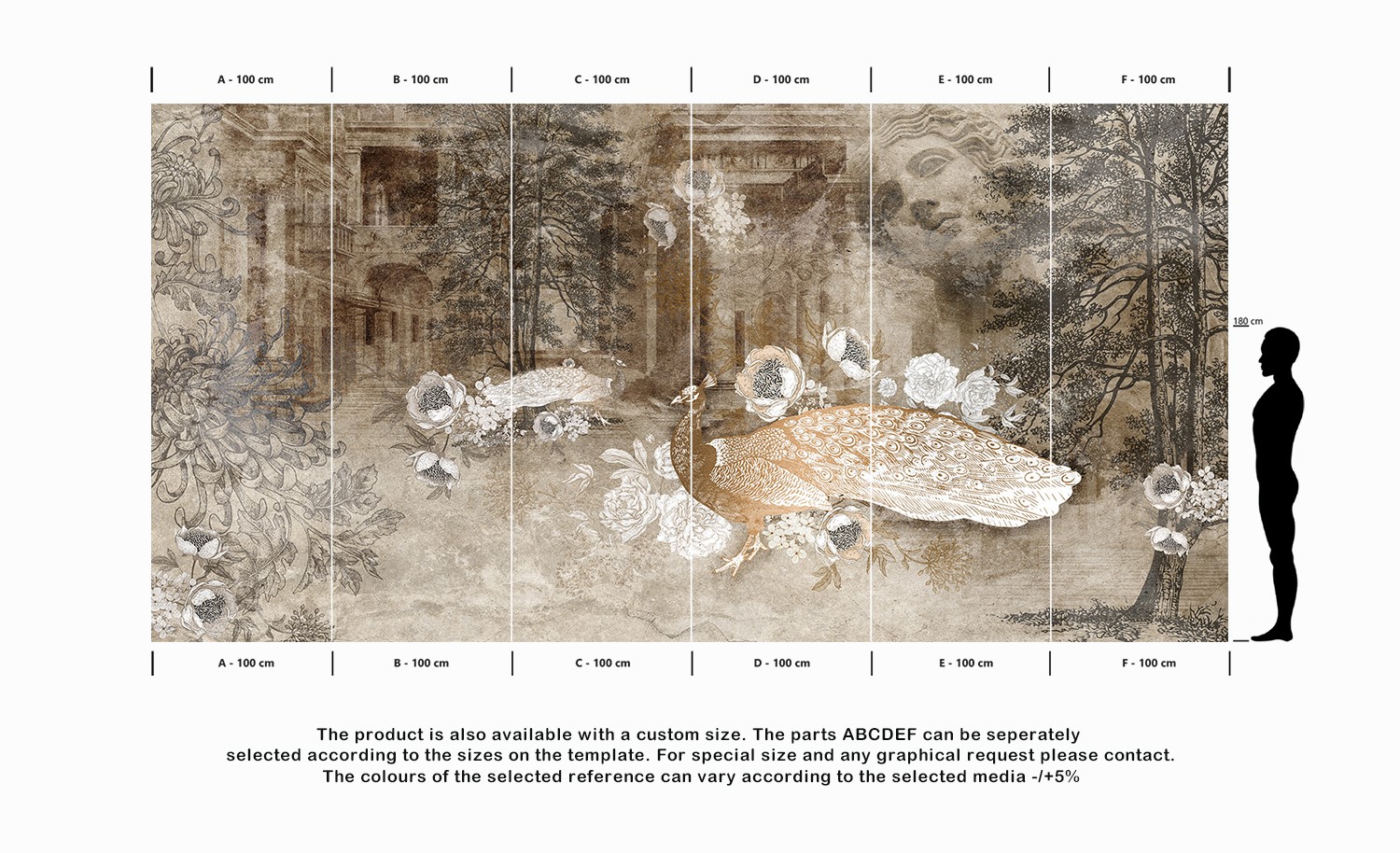 The product is also available with a custom size. The parts ABCDEF can be seperately