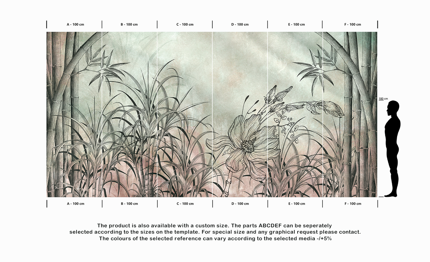 The product is also available with a custom size. The parts ABCDEF can be seperately